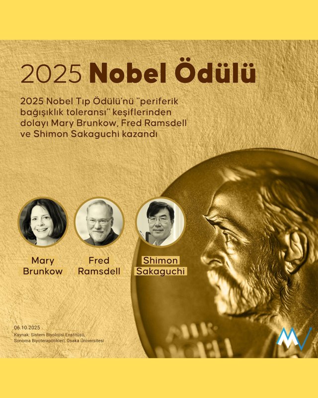 2025 Nobel Tıp Ödülü, "periferik bağışıklık toleransı" alanındaki keşifleri dolayısıyla ABD'li Mary Brunkow ve Fred Ramsdell ile Japon Shimon Sakaguchi'ye verildi.
