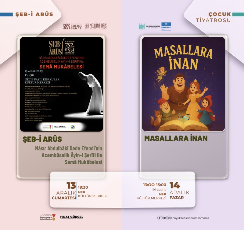 Kahramanmaraş Büyükşehir Belediyesi, Türkiye’nin ilk UNESCO Edebiyat Şehrinde kültür sanat faaliyetlerini artırarak sürdürüyor. Mevlâna İdris Kültür Sanat Sezonu kapsamında hazırlanan aralık ayı programı, tiyatrodan söyleşilere, okur-yazar buluşmalarından çocuk etkinliklerine kadar geniş bir yelpazede vatandaşlarla buluşturulacak.