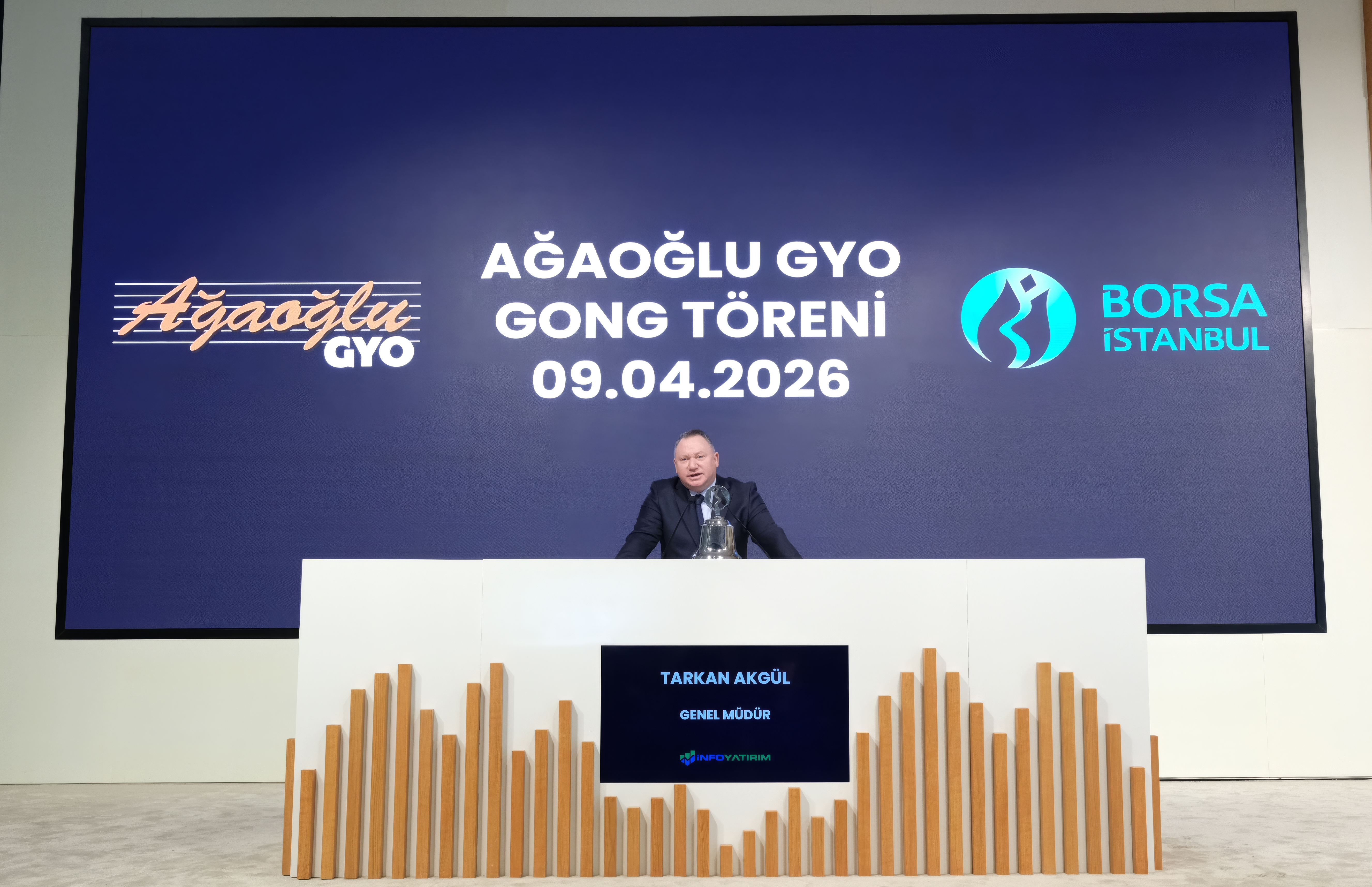 Tören, Borsa İstanbul AŞ Genel Müdürü Korkmaz Ergun, Ağaoğlu GYO Genel Müdürü Sena Ağaoğlu Kırcal, Ağaoğlu Şirketler Grubu Üst Yöneticisi (CEO) Burak Kutluğ, İnfo Yatırım Menkul Değerler Genel Müdürü Hüseyin Tarkan Akgül, şirket yetkilileri ve basın mensuplarının katılımıyla gerçekleştirildi.