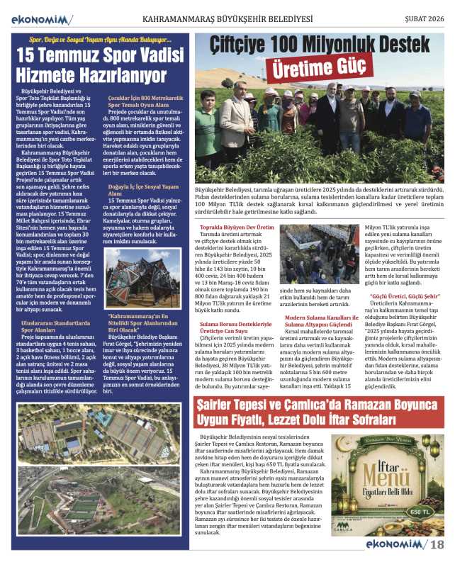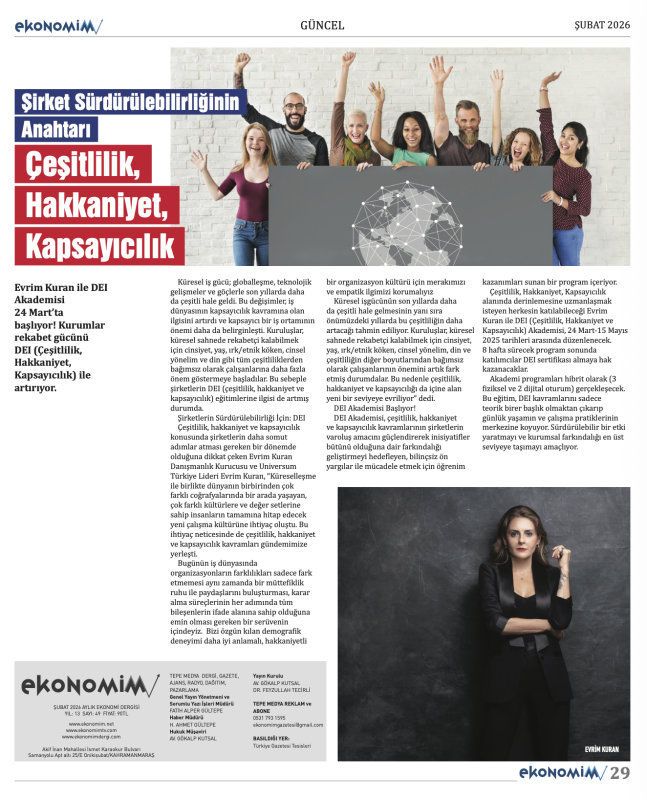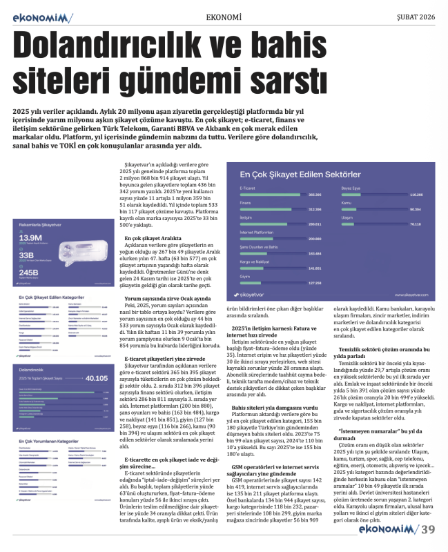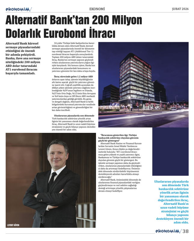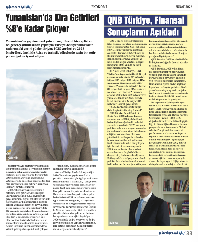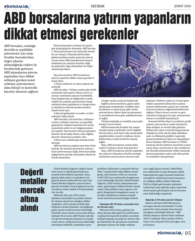 Ekonomi, finans, döviz, şirket haberleri ve yatırım analizleriyle dopdolu içerik sunan ŞUBAT 2026 sayısı; döviz piyasalarından borsa gelişmelerine, girişimcilikten reel sektöre kadar birçok önemli konuyu ele alıyor. Türkiye ve dünya ekonomisindeki güncel gelişmelerin detaylıca analiz edildiği sayıda; şirket profilleri, yatırım tüyoları ve uzman yorumları da yer alıyor.