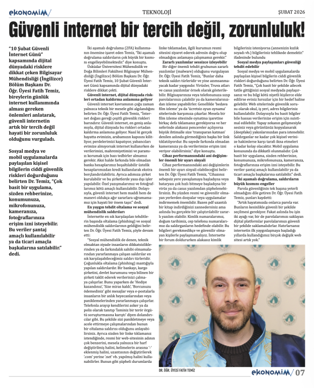 EKONOMİM ŞUBAT 2026 sayısı hem basılı formatta hem de dijital platformlarda erişime açık. Ekonomiyi yakından takip edenler için adeta bir rehber niteliği taşıyan bu sayıda, özellikle son dönemdeki finansal gelişmelere ve yapay zekanın hayatımıza etkisine dair çarpıcı başlıklar dikkat çekiyor.