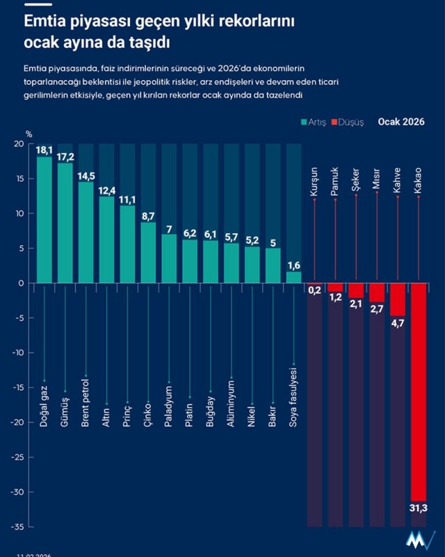 Emtia piyasasında 2025 yılında görülen yükseliş eğilimi ocak ayında da devam etti.