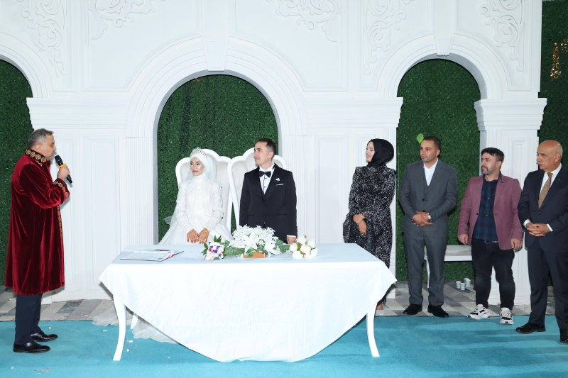 Başkan Hanifi Toptaş’ın kıydığı nikâhla Elif Korkmaz ve Emrah Kelek çifti, hayatlarını bu özel tesiste birleştirdi.