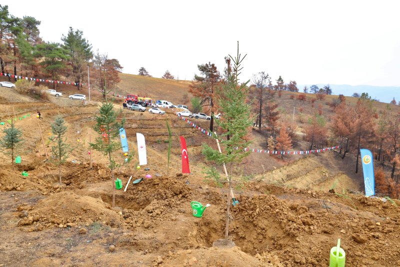 Etkinlik boyunca yüzlerce vatandaş, öğrenciler ve gönüllüler fidan dikimine katılarak, yangında zarar gören alanların yeniden yeşermesi için el birliğiyle fidanları toprakla buluşturdu.