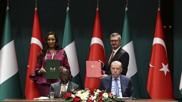 Cumhurbaşkanı Recep Tayyip Erdoğan ve Nijerya Cumhurbaşkanı Bola Ahmed Tinubu, Cumhurbaşkanlığı Külliyesi'nde baş başa ve heyetler arası görüşmelerin ardından iki ülke arasında çeşitli anlaşmaların imza törenine geçti.