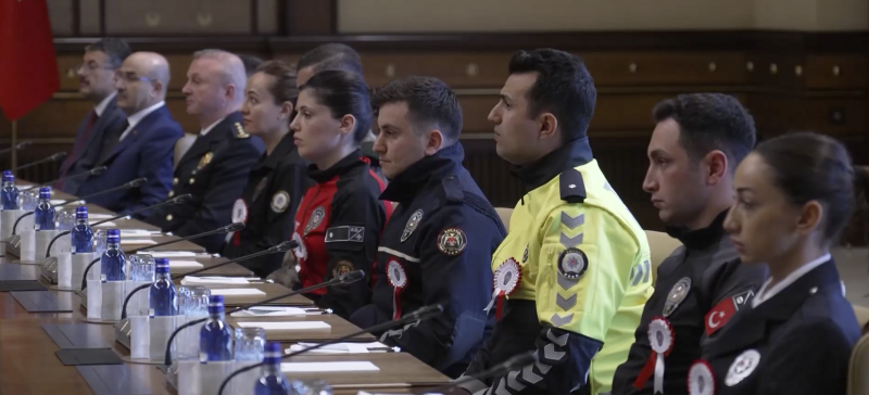 İçişleri Bakanı Mustafa Çiftçi de gece-gündüz demeden, mesai mefhumu gözetmeden, 7 gün 24 saat görev ifa eden Emniyet mensuplarıyla Cumhurbaşkanı Erdoğan'ın huzurunda bulunmaktan duydukları mutluluğu dile getirdi.